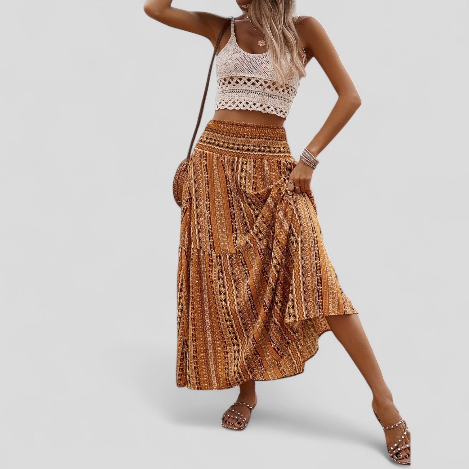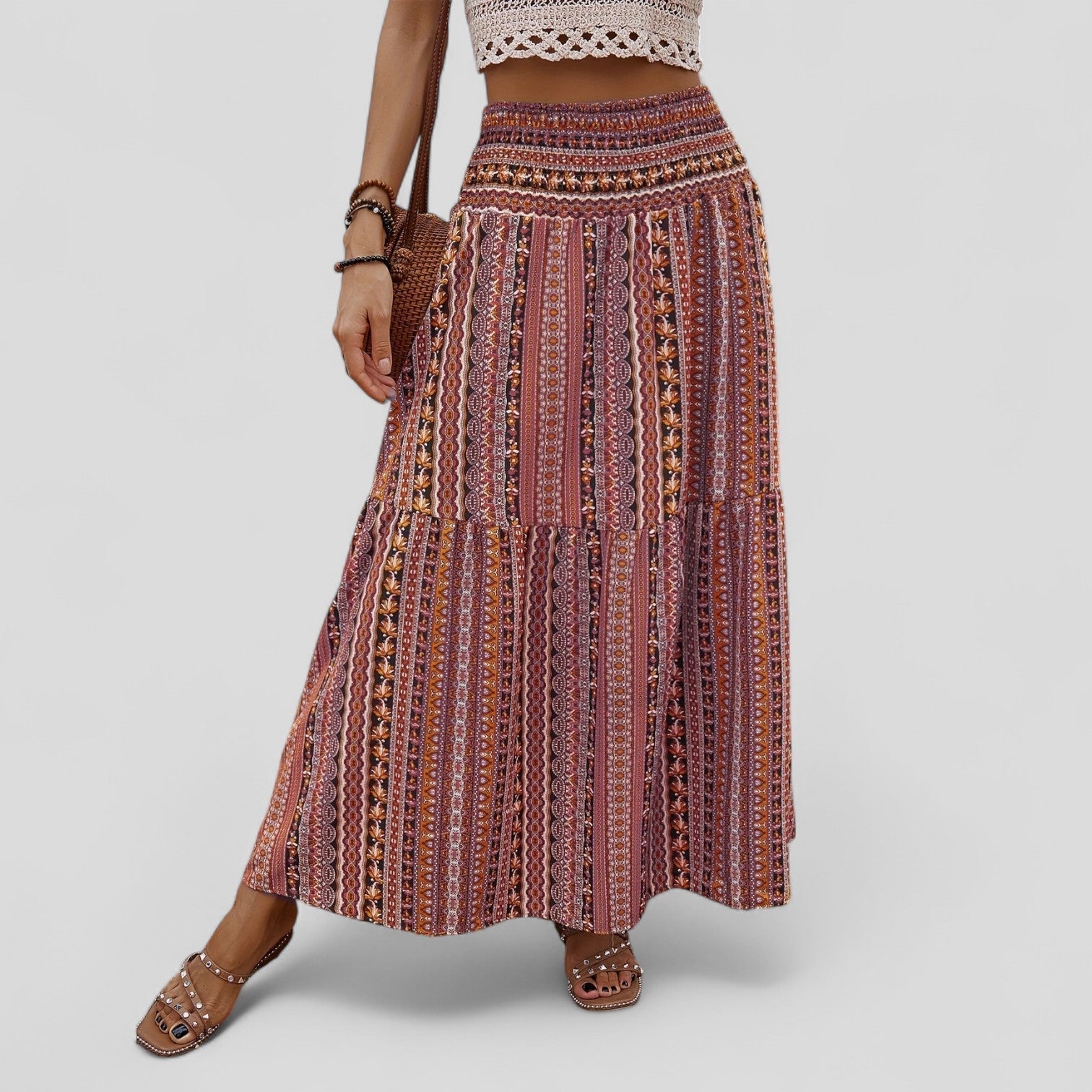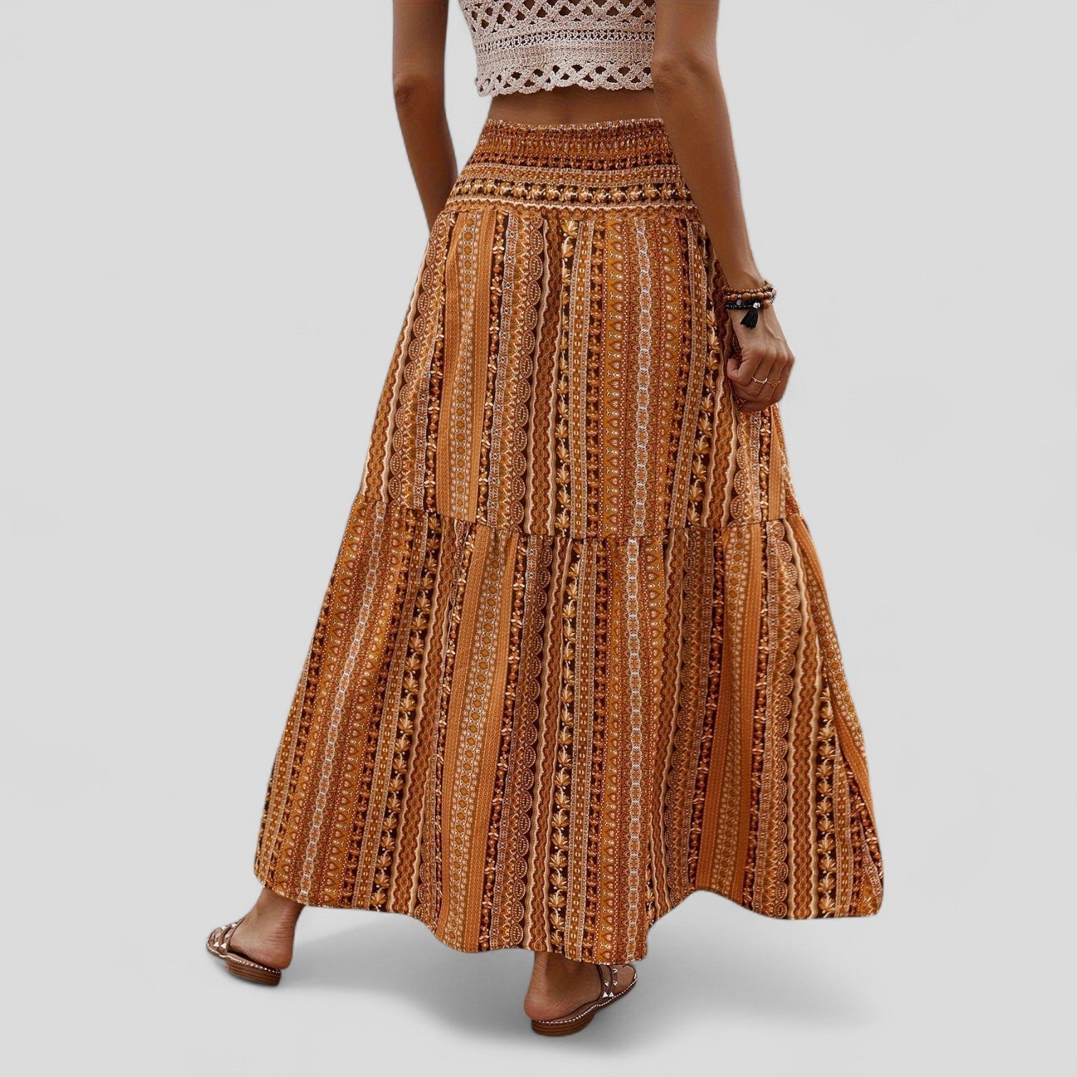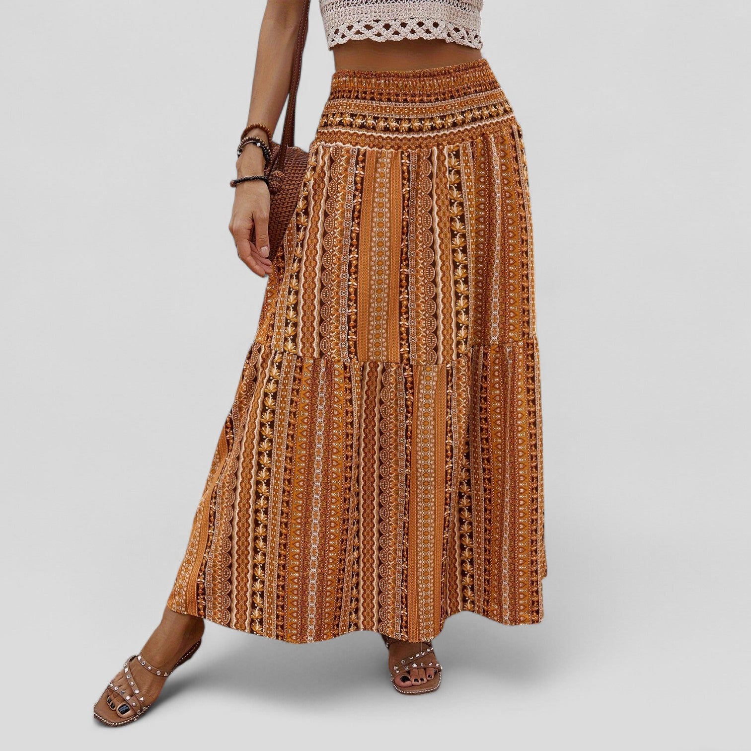 Descubre nuestra amplia falda maxi con un patrón inspirado en la tradición y un auténtico toque étnico. Diseñada para brindar estilo y comodidad, esta falda es perfecta para cualquier ocasión.