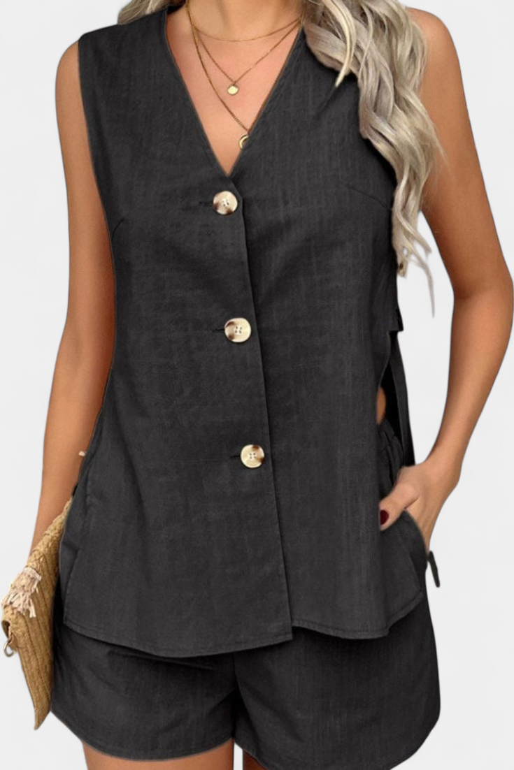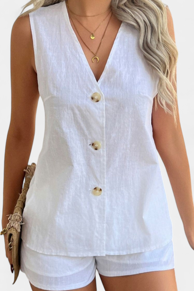 Loren | Conjunto de Lino Sin Mangas de Estilo Relajado